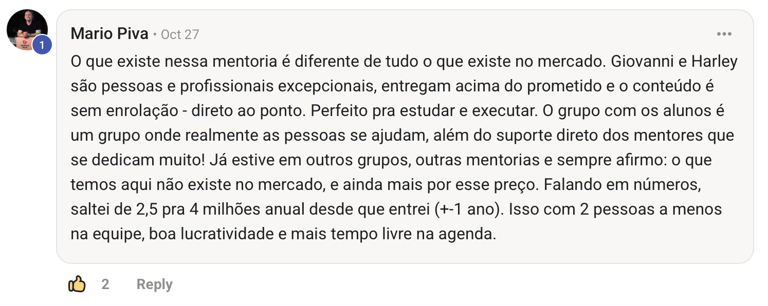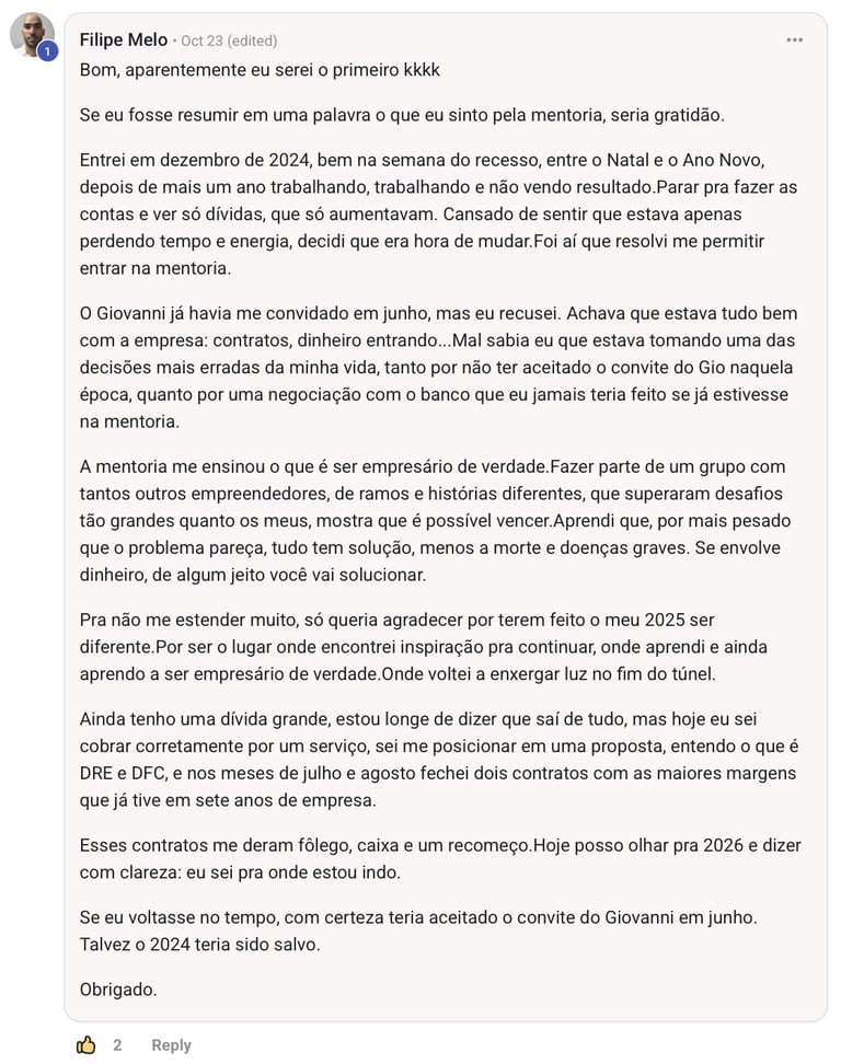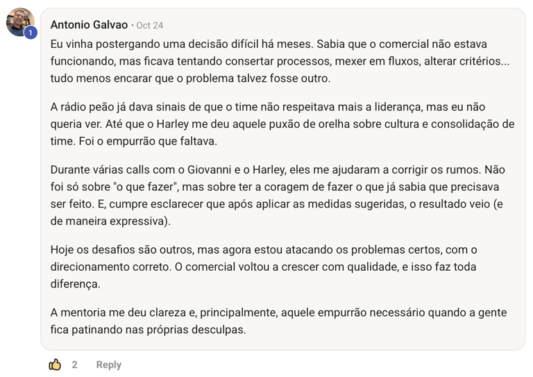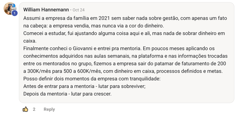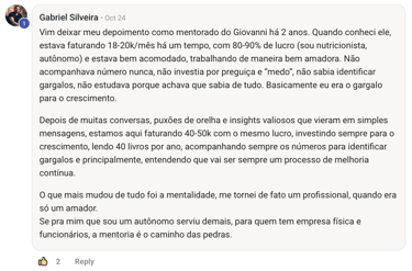 Giovanni não ensina o que leu. Ensina o que vive. E por isso, seus resultados falam por ele.