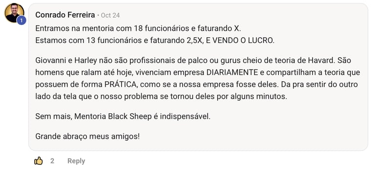 DEPOIMENTOS MENTORIA BLACK SHEEP
