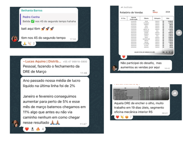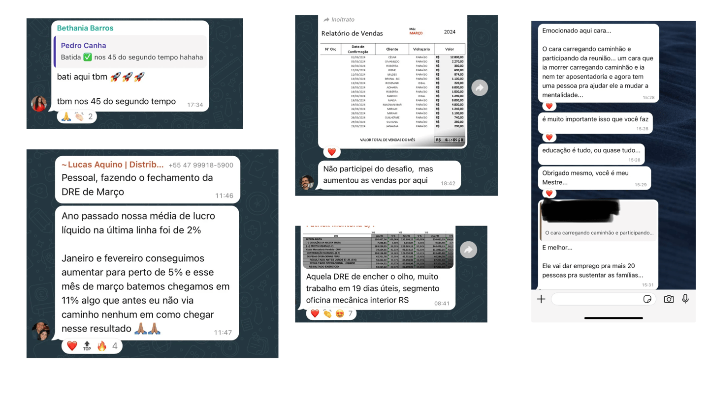 Grupo de WhatsApp onde acontece suporte e networking com outros empresários.